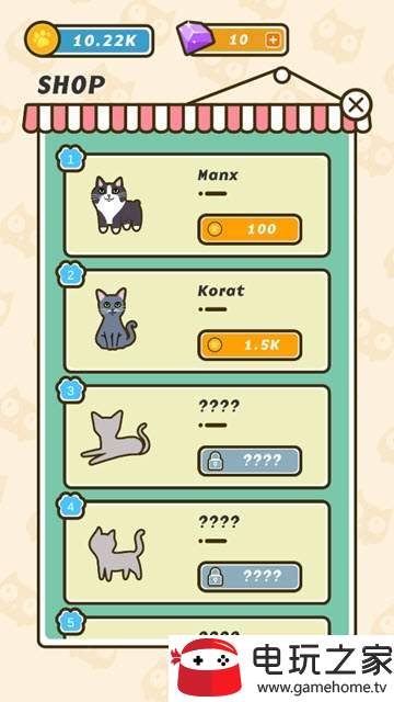 您购买,合并和管理您的猫。你点击它们触摸它们,喂它们,让它们开心。你可以增加猫的情绪,这会增加你的收入,从而获得更多的黄金。
