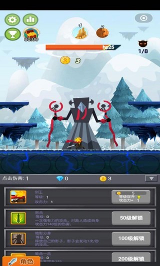 2、海量不同的点击关卡挑战,每一关的BOSS都不同!