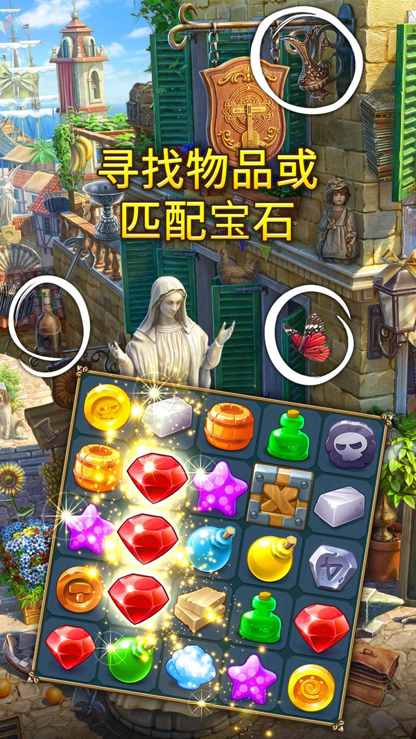 如果您喜欢三消游戏即可挑战宝石匹配关卡,而寻物游戏的粉丝则可畅享搜索任务的乐趣!您随时都能切换游戏模式!