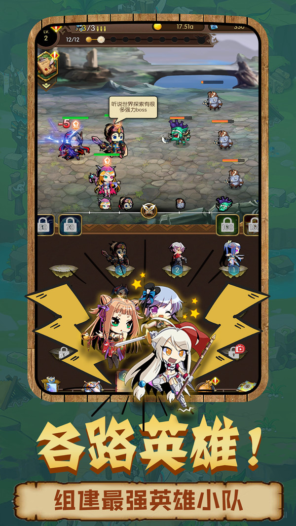 挂机就能升级英雄,快来培养大陆最强的英雄团!