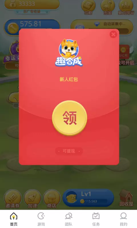 最新出的一款宠物狗合成赚钱的陀螺模式平台,趣合成app的玩法跟普通的合成游戏要更高级一些,趣味性也比较强,不会让你无聊的游戏,合成的狗狗都会帮你带来收益,喜欢这类合成分红赚钱的朋友一定要试试