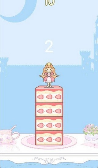 1、小小公主在餐桌上,向上跳跃让新的豆腐堆叠成塔,玩家触屏公主跳。