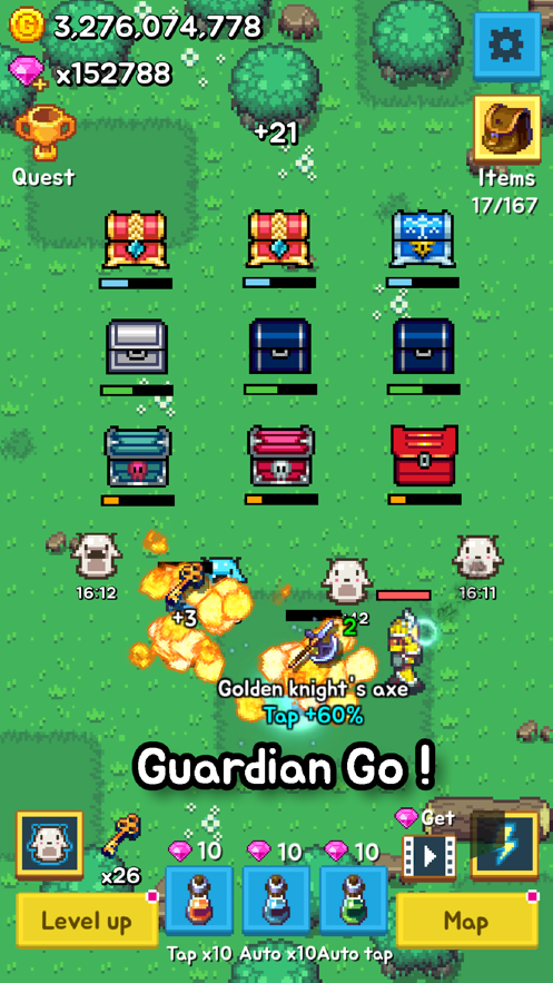 3、合成宝箱不断提升它的品质,更加多趣的玩法任你在游戏当中自由的展开。