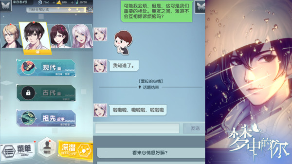 梦中的你是一款好玩的精心策划的休闲益智游戏,《梦中的你》是来自《流言侦探》开发团队的最新作品,也是一款全性向悬疑恋爱游戏。本作中,玩家和失去记忆的两位男性和两位女性,在一个名叫“漆园”的地方生活。在重现四人记忆的过程中,逐渐引出一段跌宕起伏的故事。