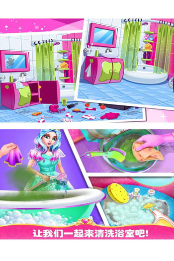 让脏乱的城堡闪闪发亮,感受清洁房子的乐趣,培养卫生习惯。