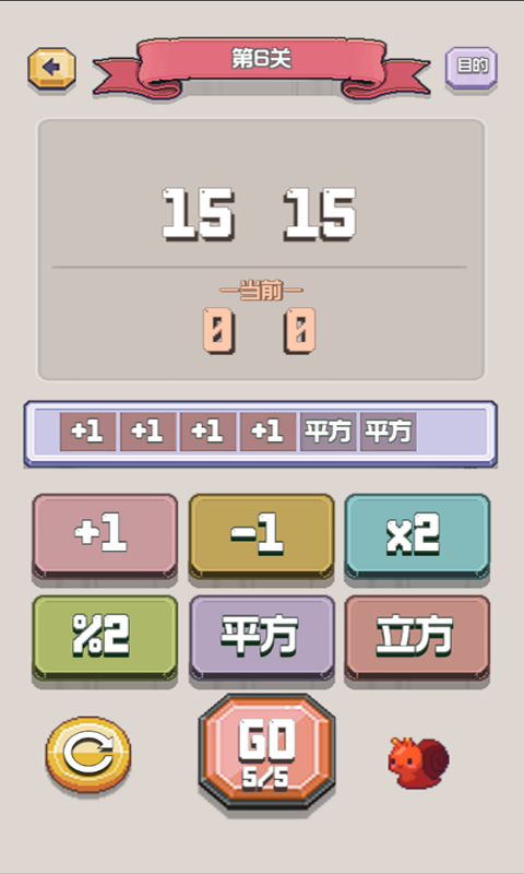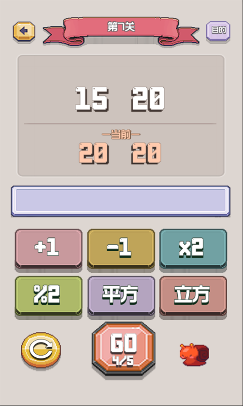 3.关卡里面会有一个数字,需要用户使用当前的加减乘除,百分比平方立方来过关。