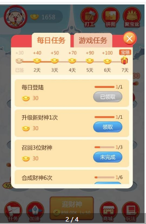 2、各项活动惊喜不断,每天都需要完成任务去领取对应的贡品,给财神进贡;