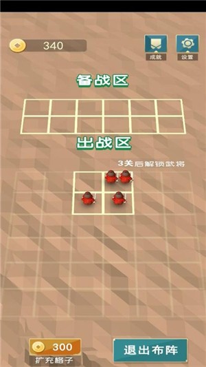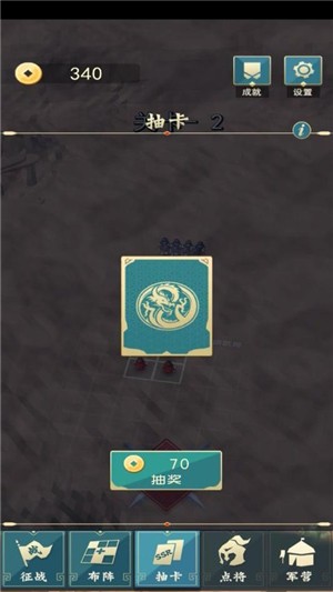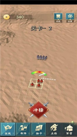 3、模拟真实的古代战场,没完成一次一个征战关卡挑战会获得一定金钱奖励,可以进行抽卡或者扩充战场格子,格子和阵法、阵容搭配一样重要