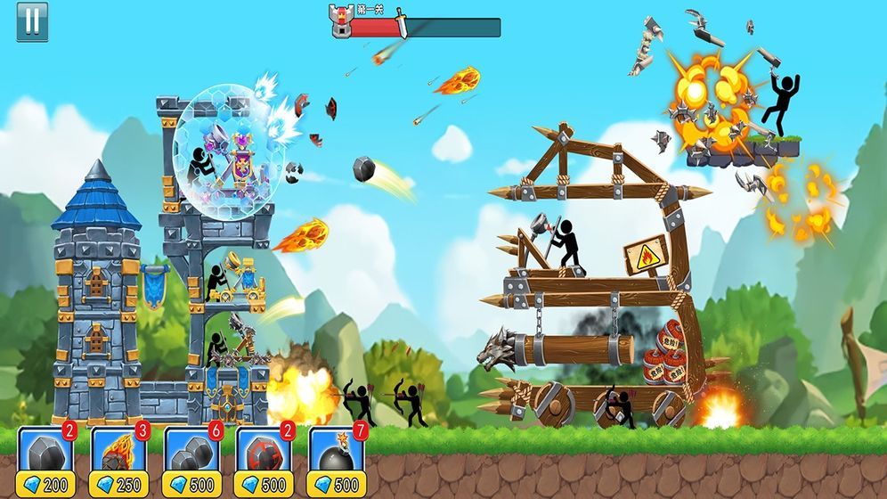 3、保护自己的地盘,敌人的炮弹也会打过来,火柴人进攻的时候,防御也要做准备。