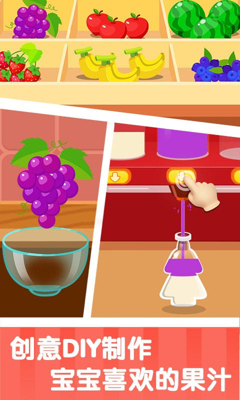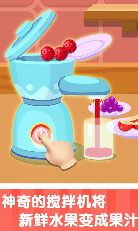 玩家将使用榨汁机和水果来制作好喝的果汁。游戏的玩法非常的自由,各种水果随你搭配,还能调出不同颜色的果汁哦!游戏的操作非常的简单,让小朋友能够快速掌握。喜欢这款游戏的话可不要错过哦,快来下载吧!
