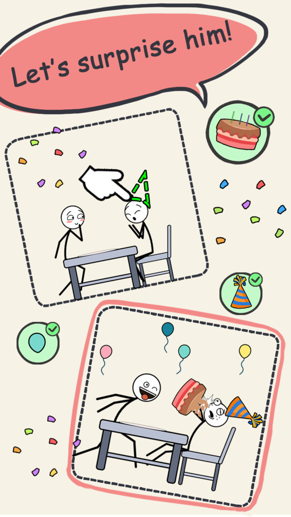 画线解谜3是一款非常考验脑洞的益智解谜类游戏,游戏采用了十分魔性的火柴人为主题,游戏画面精致简介,操作简单易懂,还有很多海量有趣的关卡模式等你挑战。玩家需要根据提示来解开谜题,必须放下普通的思维,才能发现秘密解开谜题!