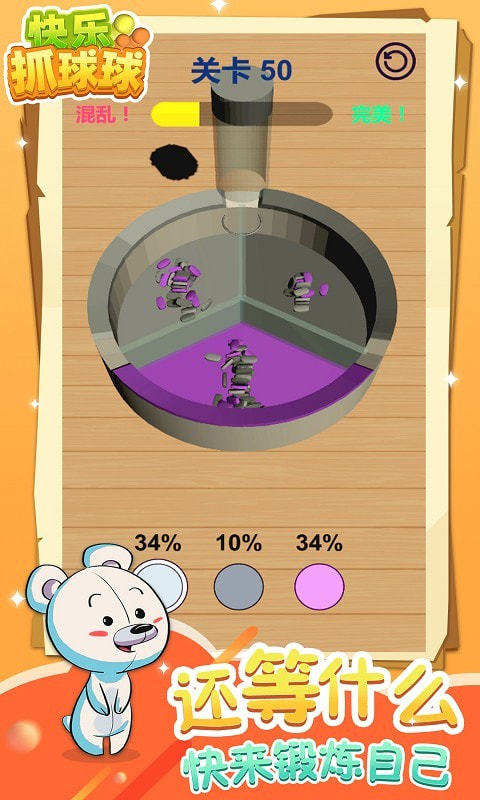 快乐抓球球是一款相当适合儿童的益智休闲游戏,游戏新颖独特的玩法、充满色彩感的画面设计,适合各个年龄段的玩家。您可以通过更多独特的挑战来完成关卡,并表现出控制彩球的能力。您需要准确分类不同颜色的球,并将罐子中的所有球滚动到目的地。