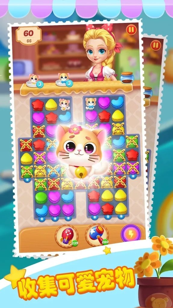 收集各种趣味可爱的宠物猫狗萤火虫就可以最终完成游戏的收集任务解锁更多好玩又趣味的游戏关卡。
