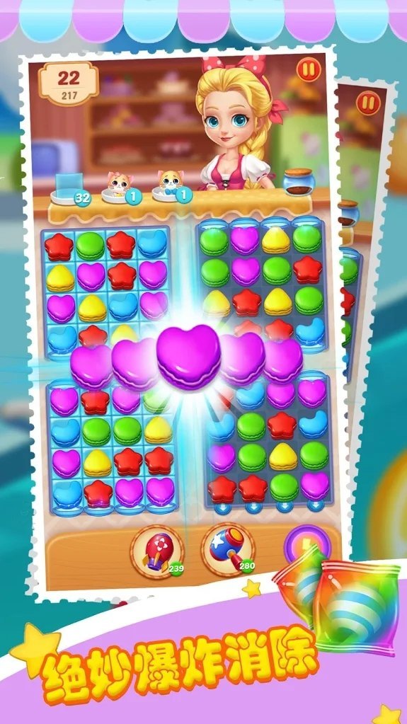 随时随地免费玩,趣味三消游戏;