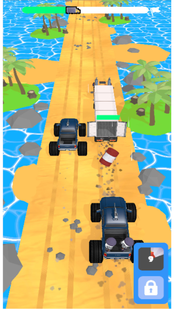 卡车混乱战游戏,这并不是一款单纯的竞速游戏,因为撞车的操作时长会发生,如果你能成功让对手失去行动能力也是一种成功的战术,车辆的性能尤为关键,除了速度、稳定性之外,还要考虑到重量等问题,这些在比赛的时候都会对你起到帮助,充分发挥出自己的优势,只要能夺冠一切行为都是允许的。