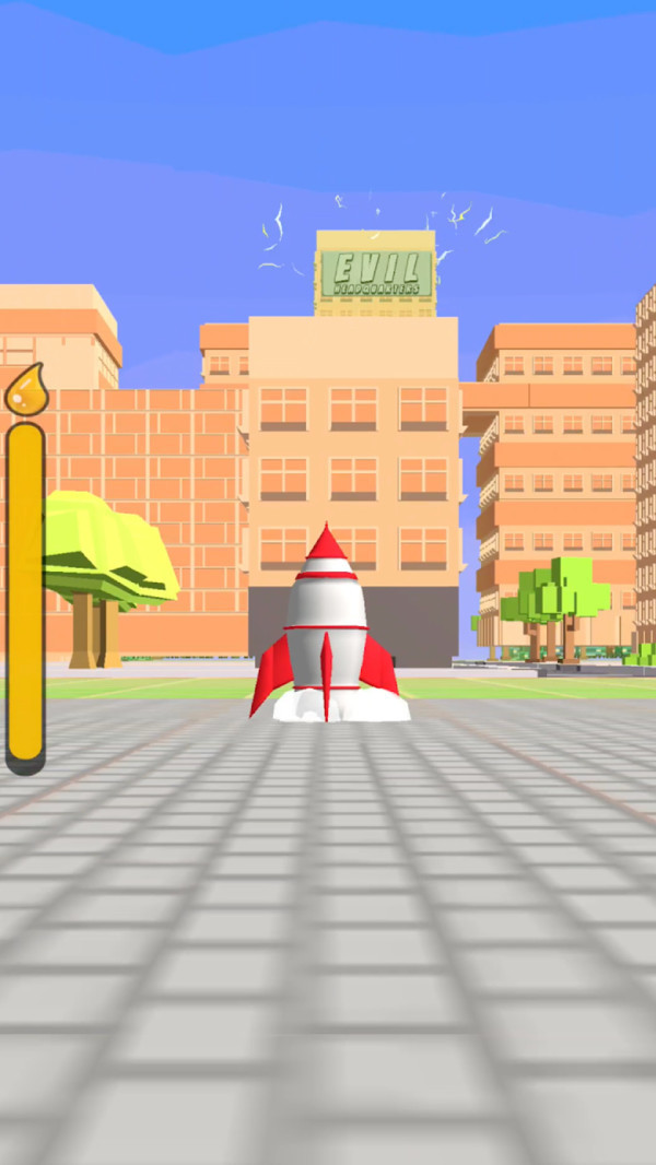 画面清新简单,玩家需要操控着火箭摧毁建筑物,操作简单,没有任何的限制,玩家可以自由发挥想象力,享受摧毁的快感,放松心情,摆脱一切的烦恼。当你摧毁的建筑越多,获得的金币越多,不断的升级你的武器装备,提高攻击力。