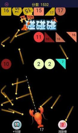 开局碰碰碰是一款弹球玩法的休闲小游戏,游戏中有一个只可以旋转移动的龙虾,我们通过操控龙虾的方向来进行瞄准射球。所有的玩法都能点击屏幕来操作,尝试比较丰富趣味的对局方式,合理的将小球弹出去吧,简单又容易上手的游戏挑战。