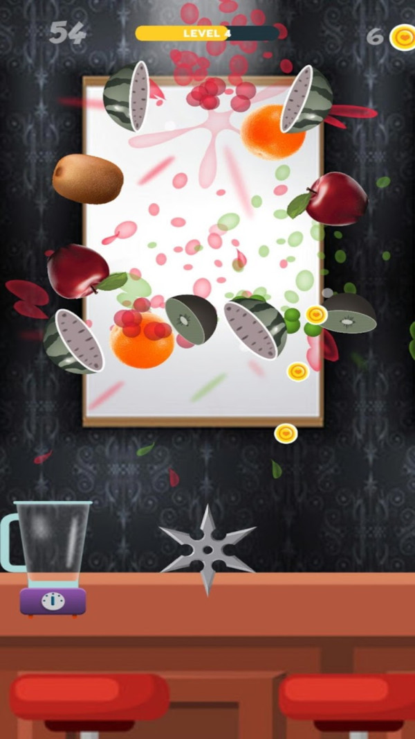 2、自由的更换你的飞刀武器,操作武器正确的命中水果,锋利的刀痕就会带来挑战。