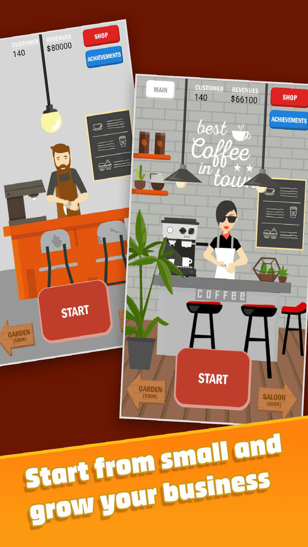 玩家在游戏中是一名咖啡师,你可以在这里建立自己的咖啡店,并按着自己喜欢的路线去发展。制作美味的咖啡,吸引更多的顾客,赚取金钱并升级自己的店铺,成为一代真正的咖啡大师哦!游戏玩法上还是比较简单的,喜欢的小伙伴快来下载玩玩看吧!