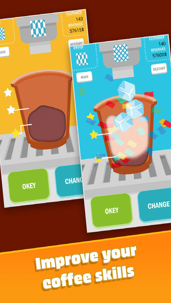 添加适量的咖啡豆以制成完美的咖啡。比水龙头融合!你能让顾客满意吗?
