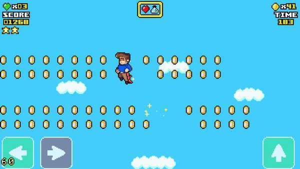 顾名思义是一款冒险闯关的小游戏,游戏采用了像素的风格,同时画面也是十分的清新的,游戏中除了障碍还有怪物在进行拦路哦,要小心点,不要碰到了,不然只有死亡的结果在等着你,如果玩家十分的有能力还可以进行排行榜,成为十分有名气的人物哦!