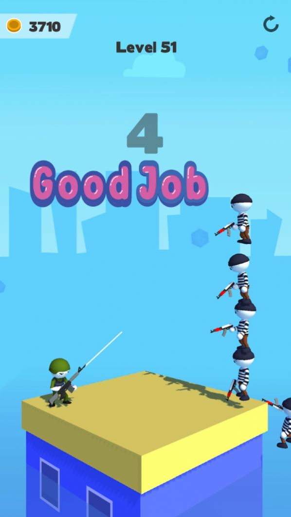 全部射下来是一款玩法十分新颖的休闲射击游戏,在这里你将扮演一名枪手,面对关卡内的各种人墙,你需要准确的射击,精准的爆破,消灭他们,游戏中的射击角度将非常重要,强大的射击能力可以帮助你轻松通过海量关卡,玩家可以挑战自己喜欢的关卡,趣味性非常高。