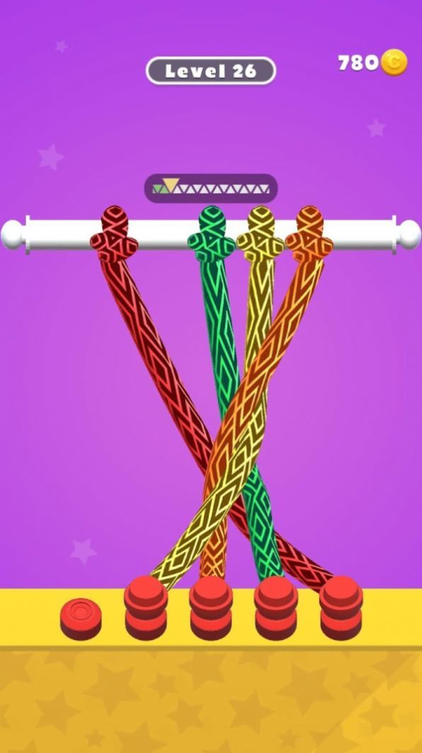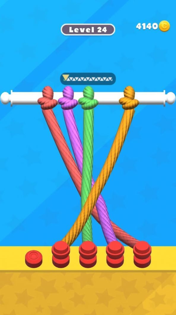 每一个绳子的颜色不同,玩家的任务就是无论绳子打的什么结都要解开,随着等级的提升,难度也会随之增大,闯关成功者可以获得丰厚的奖励,没有任何的时间限制,操作简单,玩法丰富,挑战更多的玩法,特别适合休息的时候玩,轻松解压!