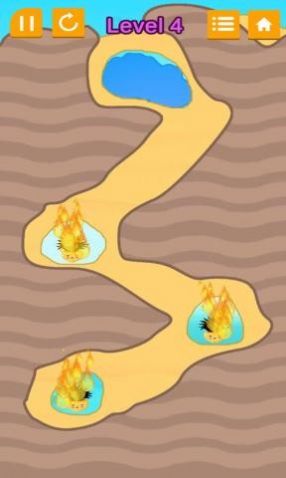 挖土引水是一款考验玩家的耐力和脑力的益智闯关游戏,烧脑程度超乎你的想象。玩家需要通过不断的思考水流的路线,将游戏中为你提供的水源通过挖一道水渠引入到着火的地方,将火苗熄灭就能够完成任务。灭火的地方看起来很简单,但是随着关卡的递增,难度也逐渐增加了,需要你充分调动你的思考能力!