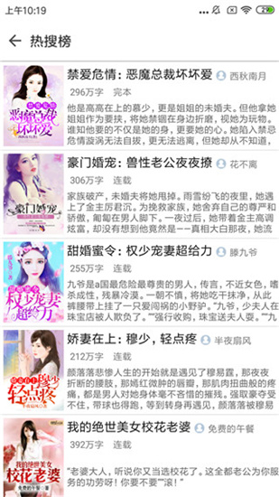 2、言情小说、武侠仙侠、青春校园、穿越架空、惊悚悬疑、历史军事、耽美、同人、宫斗等各类小说想搜就搜;