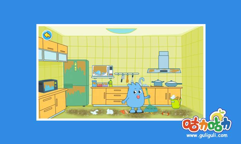 根据游戏内容提示的操作步骤,帮助小宝贝一起和妈妈打扫厨房,卧室,客厅等地方。