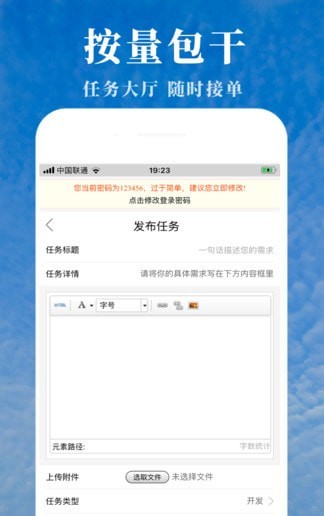 支持单人和多人接单,企业外包的时候上传需求和附件,自由职业者随时接单,以人为本,人尽其才,以德为心,德才兼备。
