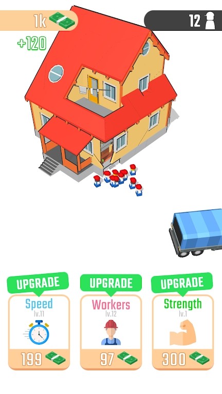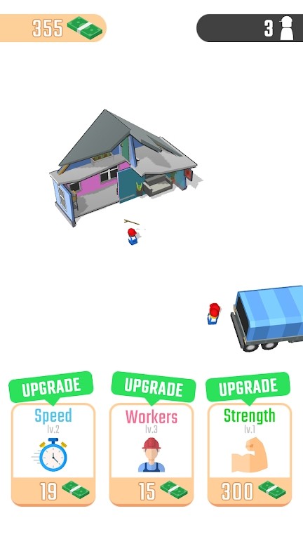 游戏的玩法非常的简单,玩家只需要在小楼建造游戏内进行楼房建造就可以了,刚开始你可能需要自己进行建造,但是到后面你就可以招募工人了,建立自己的建造团队。