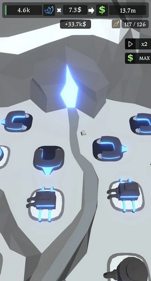 2、从采矿资源中赚钱,升级你的矿山和其他设备,雇佣新的经理。