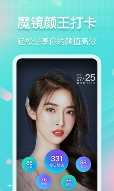 测脸型APP具有强大的美颜拍照功能,为您提供一键脸型颜值测试打分,根据您的脸型、额头大小、双眼距离、鼻子位置、嘴巴下巴的大小等,为您提供在线、及时的脸型颜值测试并打分,只需您轻轻一拍,颜值分数立马揭晓。