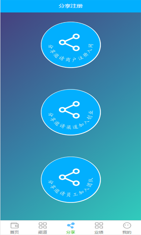2、渠道管理∶用于管理渠道、查看渠道信息、给渠道设置分润。