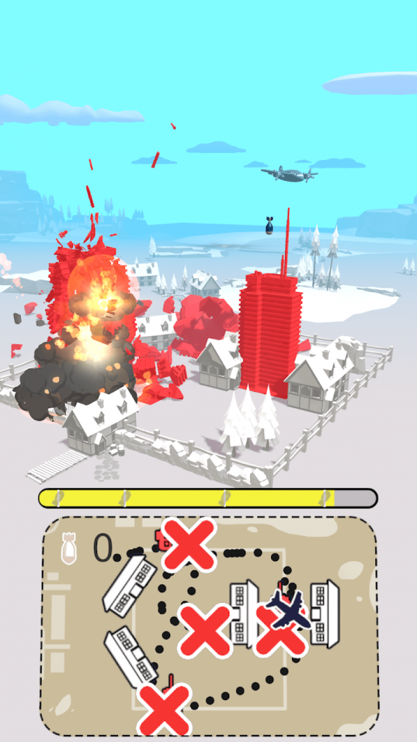 空袭城市推荐给喜欢飞行射击类手游的玩家,在这里你需要根据游戏给出的空袭任务,驾驶你的飞机来到城市上方,然后投放弹药,你可以很轻易的去将一个个的大楼给摧毁,可以造成更大的爆炸效果,整个玩法也是相当的解压的,很是刺激,感兴趣的话就来下载试试吧。