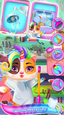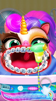 独角兽猫咪是非常适合儿童玩的卡通模拟游戏,绚丽多彩的游戏画风,非常容易吸引小朋友的目光。玩家在游戏中需要扮演一名猫咪医生,为其它的小动物进行诊断,比如牙科,修牙、补牙等,这款游戏具有一定的教育意义,提醒孩子们早晚刷牙。喜欢的朋友快来下载!