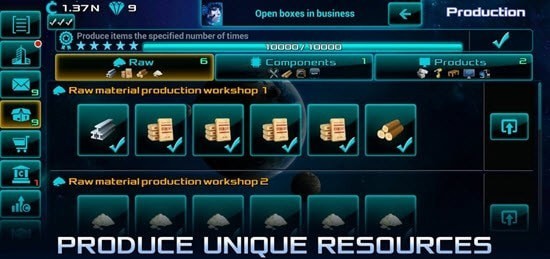 一个科幻世界等着你。作为一个商业大亨,请考虑你的发展战略,自己生产商品,增加产能或者只是在全球市场购买商品。