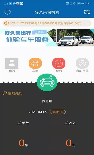 好久来出行司机端app是专为司机朋友打造的一个接单平台,在这里每天都有大量的订单,司机可以随时在线接单,大大的降低了空车率,多多的接单才能够提高自己的收入,赶紧来加入吧!