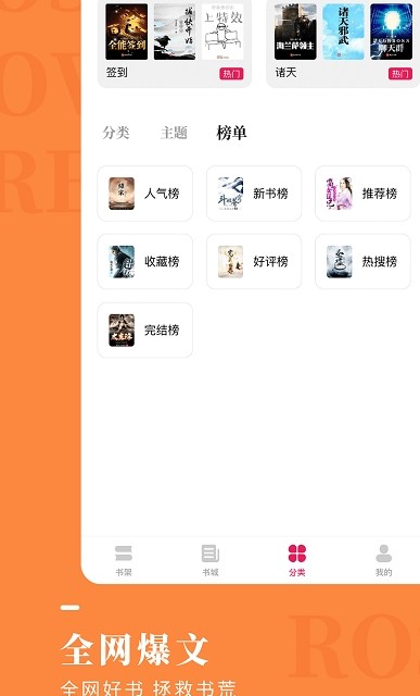 3、APP也给用户提供了各种热门小说的榜单推荐,让用户能更快的找到喜欢的小说进行观看。