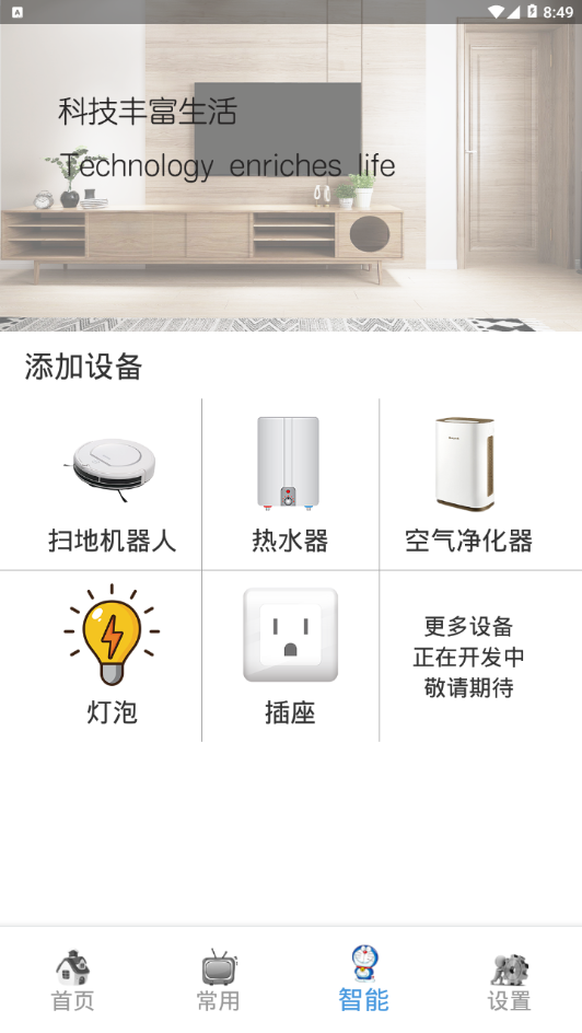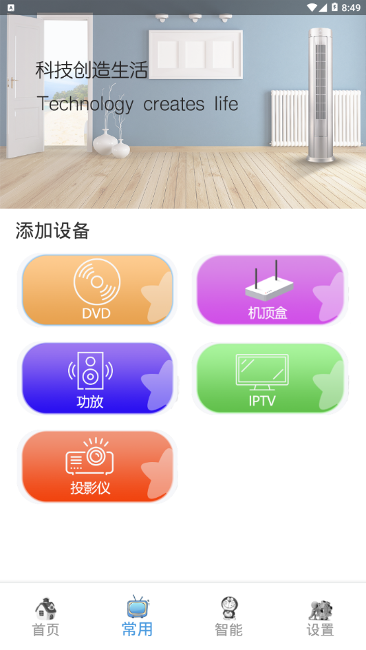 3、科技生活服务软件,帮助用户随时添加家电设备开启智能遥控,支持的设备品牌种类多。