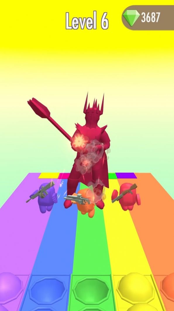 在充满色彩的世界之中快速奔跑,收集钻石来获得奖励,购买升级自己的武器;