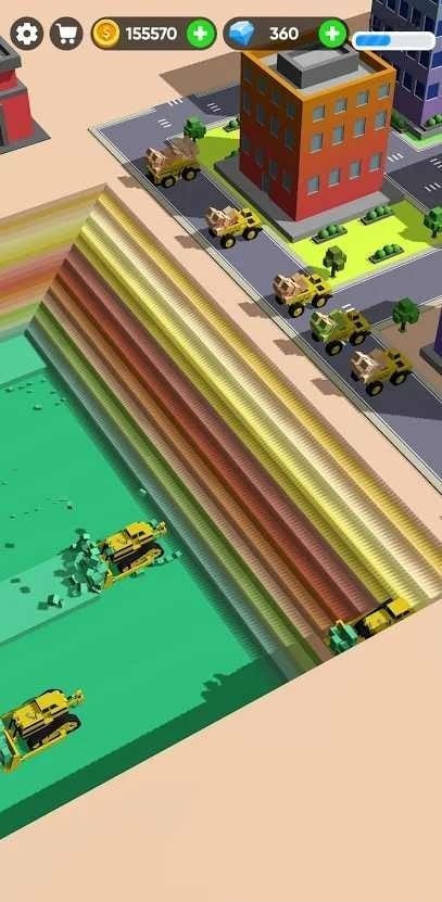 3、独特的升级系统,你可以提升工人的挖掘速度,还能增加人数,让建筑变得更加迅速,赚更多的钱;