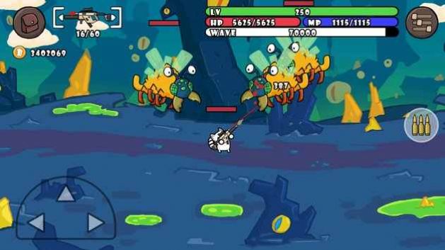 1、一款采用卡通画风打造的横版射击闯关游戏,在喵喵加特林游戏中,玩家将遇到很多怪物。