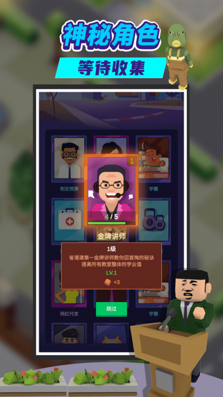 2、全方位培养学生,给玩家带来非常有趣的玩法,经营放置的玩法风格,挂机也能得到财富。