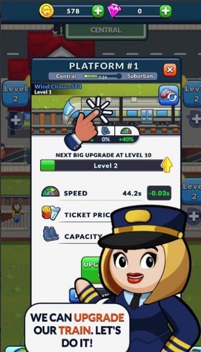 放置列车带你体验趣味的模拟经营手游,玩家在游戏中将成为一名车站的管理人员,你需要操控列车完成一些列有趣的关卡,游戏的操作简单容易上手,不断的升级你的站点,雇佣更多的工作人员提升效率,赶快下载体验吧!