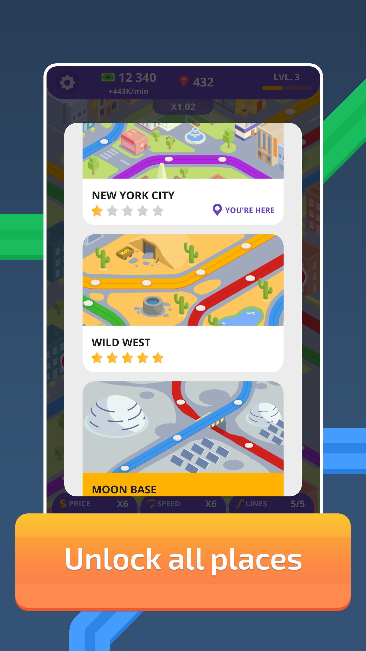 1、在闲置不用的火车大亨,你不但打开了新的城市,并且还打开了全新升级升级升级的地区。
