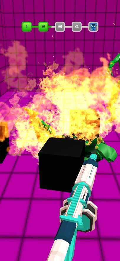 游戏中玩家可以拿起手中的武器来朝你面前的敌人来喷火,一路上会碰到非常多的的敌人,玩家需要消灭所有敌人才能通关。