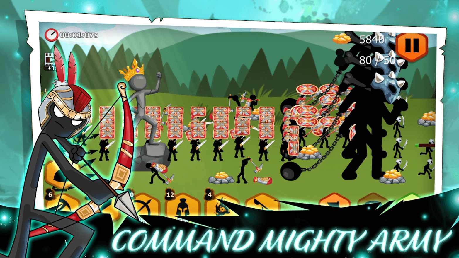 2.训练自己的火柴人大军,将各种作用不同的兵种进行合理的搭配哟。
