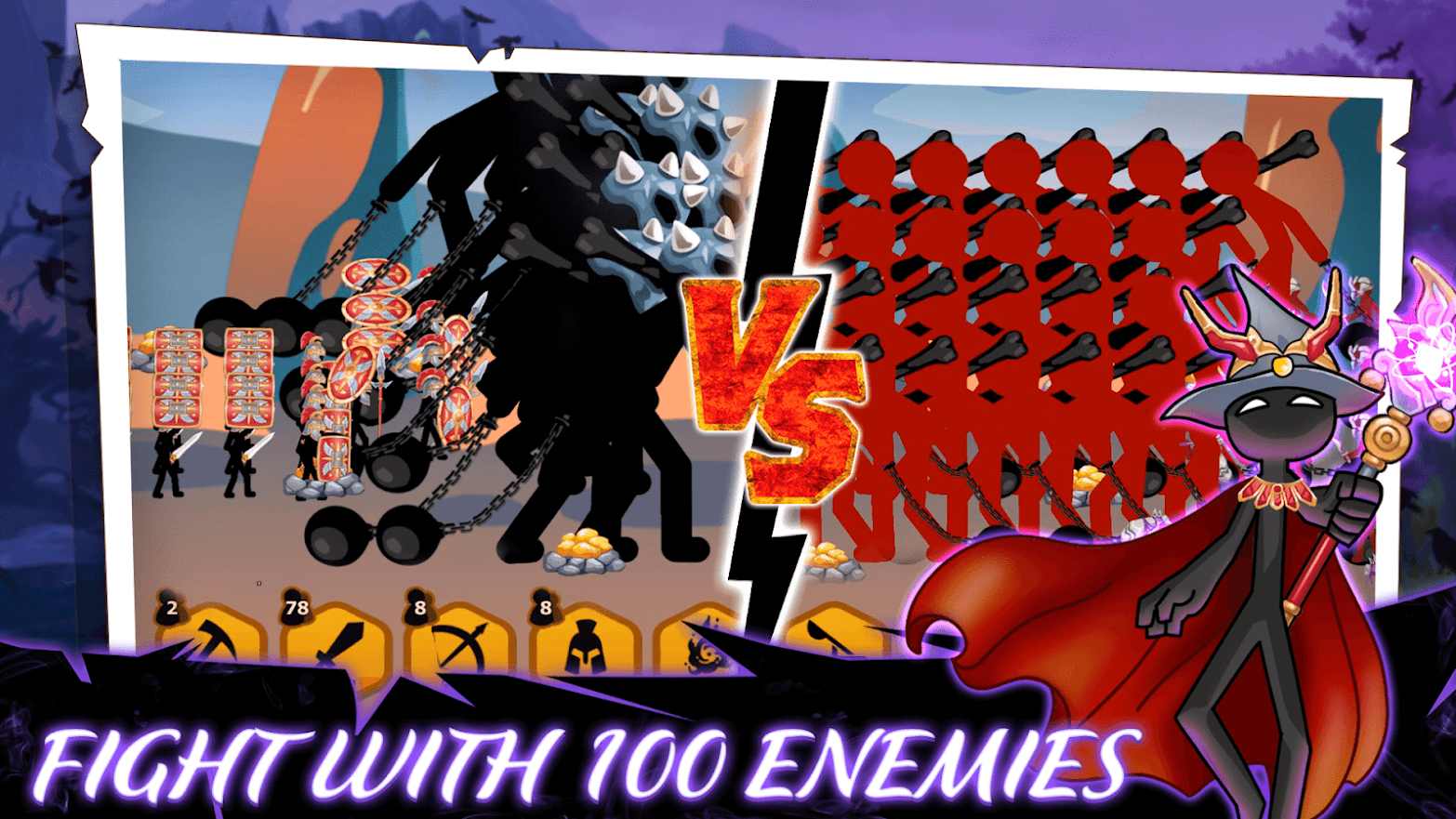 火柴人帝国大战带你体验非常刺激的策略战争,玩家在游戏中将操控由火柴人战士组成的军队开始战斗。你只需要消灭全部敌人即可取得关卡的胜利,成功进入下一轮,并且不同的部队有着各种的克制关系,玩家利用好这一点即可轻松赢得胜利,成为百战百胜的军神。